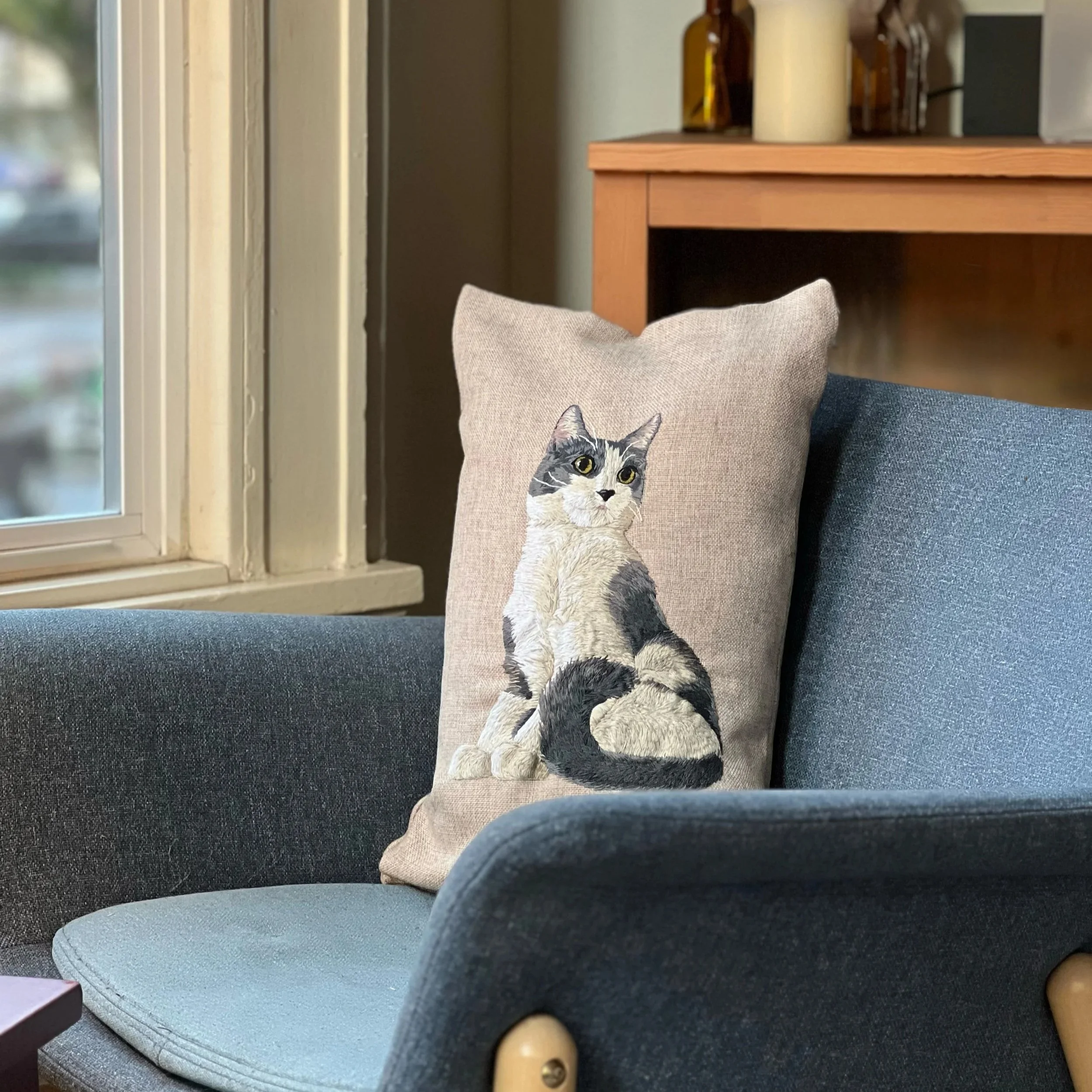 Needlepainting on cotton burlap. Used 5 egyptian cotton floss skeins of various colors and shades.